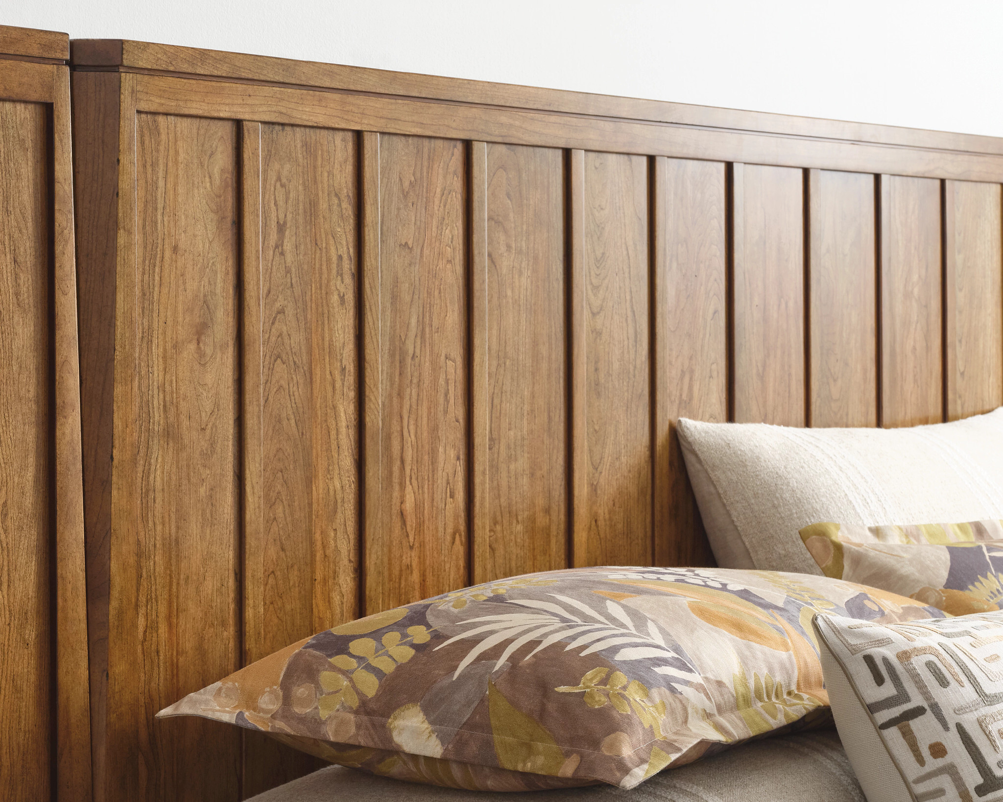 The Aspire Lineage Panel is the perfect bedroom centerpiece for showcasing the natural beauty of solid cherry. With the solid wood boards crafted into the design such that the wood grain runs vertically, the design is unique while retaining a sense of elegant simplicity. In keeping with one of the major themes of the Aspire collection, the Lineage Panel Bed features the beveled post design. This element also gives a clean connection point to add the Aspire Wall Panels (optional) which can flank the headboard and create a finished backdrop for either of the Aspire bedside pieces.
